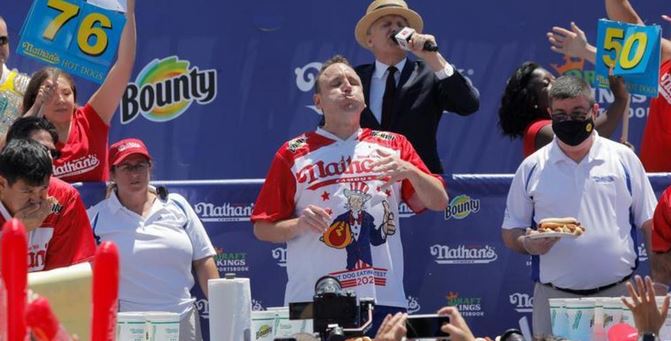 جوی چستنوت قهرمان مسابقات هات داگ خوردن رکورد جهانی خود را شکست. این فرد در مسابقه بین المللی هات داگ خوری که در بروکلین نیویورک برگزار شد توانست در مدت زمان ۱۰ دقیقه ۷۶ هات بخورد. او طی ۱۵ دوره برگزاری این رقابتها در ۱۴ رقابت قهرمان شده است. در ادامه میتوانید تصاویر این مسابقه هات داگ خوری را مشاهده کنید.